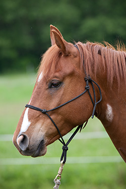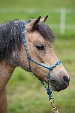 Das mag er nicht so: das stille Halfter, an das er muss, wenn er zu intensiv die Reitstunde aufgemischt hat;-)