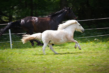 Farbe: Schimmel, dachten wir... Jetzt da sie ihr Sommerfell hat, wissen wir, dass sie ein Palomino-Schecke ist
