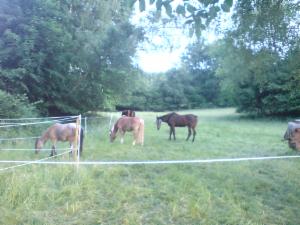 Auf der linken Seite wohnt unsere Enjoy, direkt neben der Sattelkammer zur linken, Piko zu ihrer rechten und direkt vor der Nase frisst Stabil